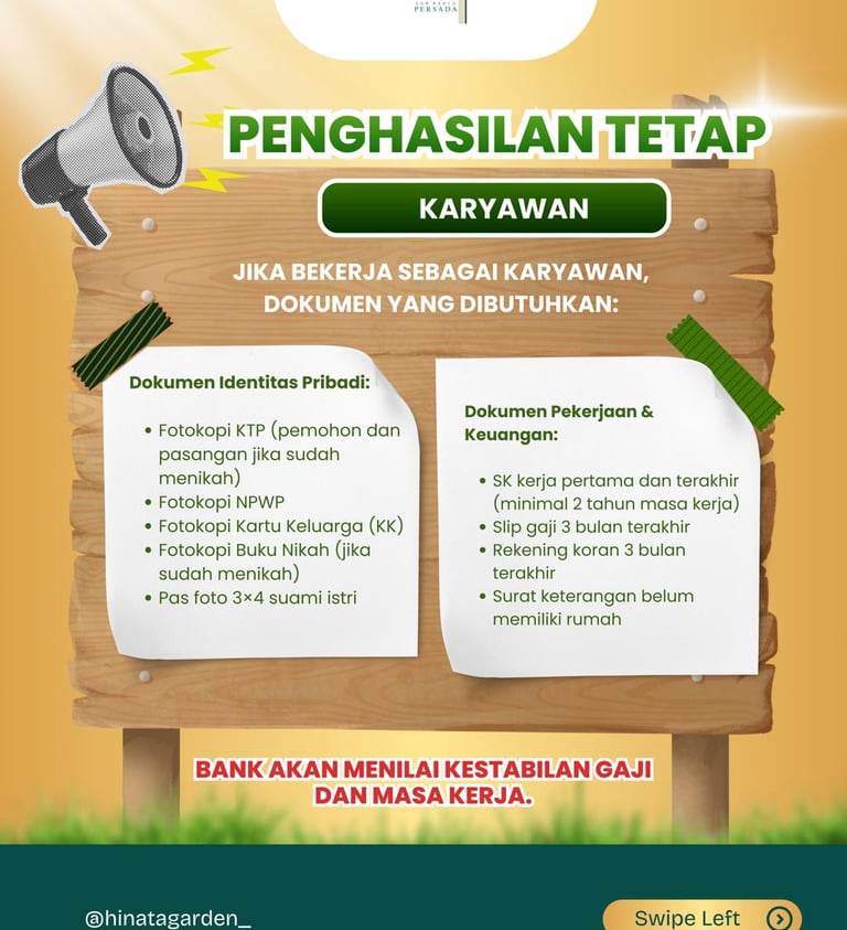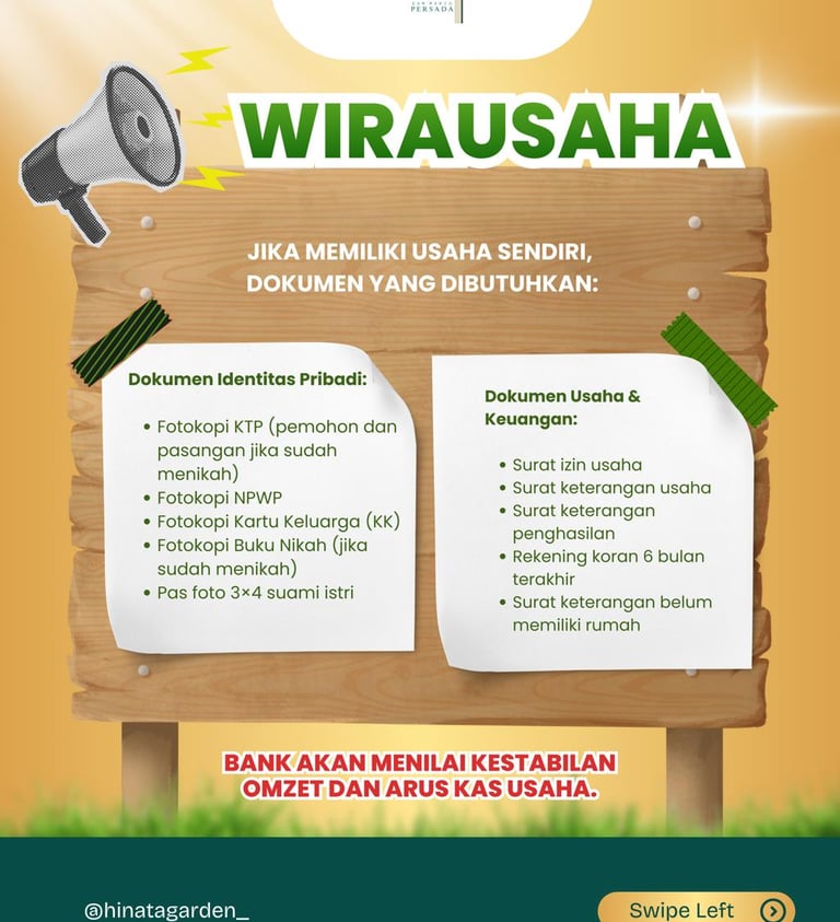 Syarat utama adalah melengkapi dokumen identitas dan bukti penghasilan.
