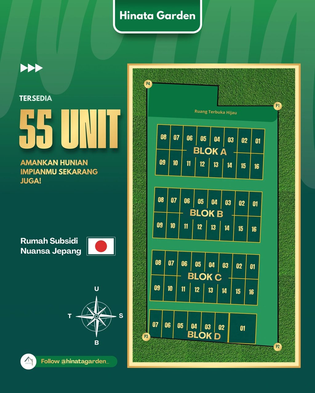 Lokasi strategis dan lingkungan yang tertata rapi menjadi alasan untuk memilih Hinata Garden.